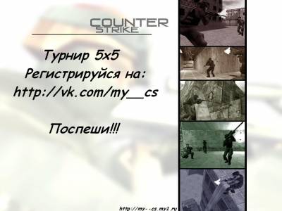Правила турнира: -Команда должна за 10 минут до игры, зайти на сервер, если команда не является на сервер на котором проходит турнир в указанное в турнирной таблице время, ей дается 15 минут, на то чтобы зайти на сервер. Если в течении этих 15 минут команда не заходит на сервер, она получает ТП (техническое поражение) - В игре принимают участие 2 команды по 5 человек в каждой. - Игра состоит из 2-х периодов. Победителем является та команда которая быстрее выйграет 16 раундов (в сумме за 1-й и 2-й). - Один период команда проводит за оборону (Counter-Terrorist Force), а второй за атаку (Terrorist Force). Право первого выбора стороны разыгрывается путём раунда на ножах. - В случае если по истечении 2-х периодов команды имеют равное количество выигранных раундов, назначаются 2 дополнительных периода по 3 раунда. - Длительность раунда: 1 минута 45 секунд - Победитель: команда, выигравшая большее количество раундов на карте. - В случае ничьей: команды играют по 3 дополнительных раунда за каждую сторону до выявления победителя. - В случае стыковых ситуаций: победитель определяется разницей выигранных и проигранных раундов - За 1 место:Три месяца рекламы на нашем сайте и прохождение на след.турнир - За 2 место:Грамота,Раскрутка группы Вк,супер сборка сервера - За 3 место:прохождение на след турнир